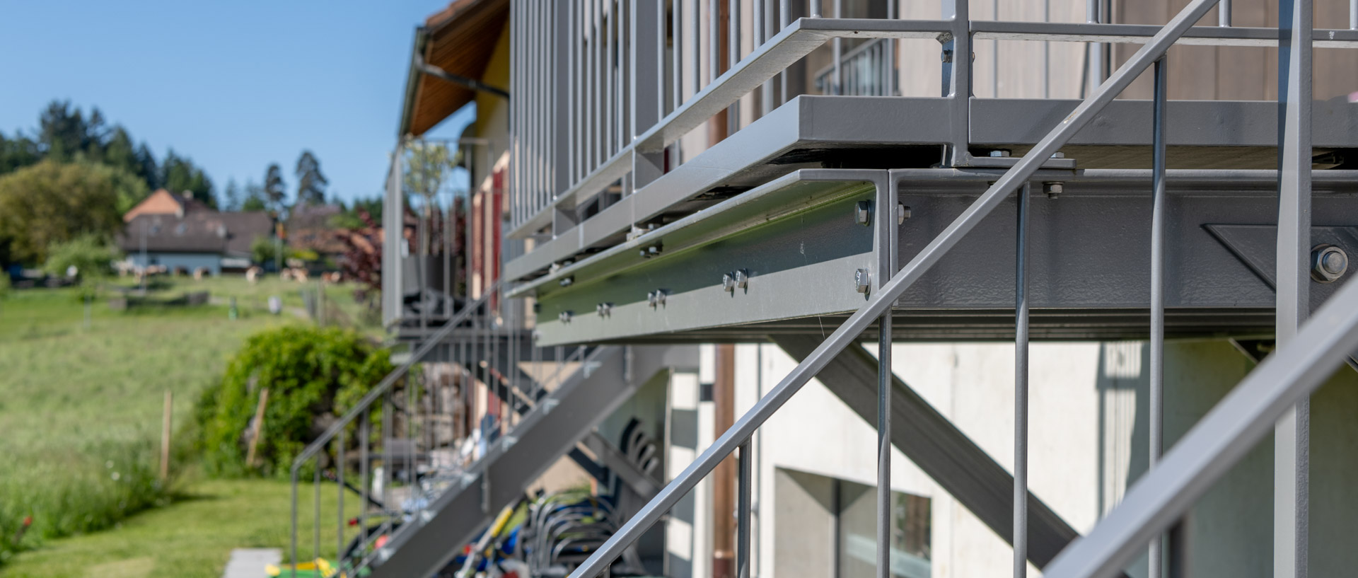 Metall und Glas ist eine Kombination, die modern und selbstbewusst wirkt. Verwendet werden nur erstklassige Materialien: Stahl, Aluminium oder Edelstahl, in roh-, geschliffen-, feuerverzinkt- oder pulverbeschichteter Ausführung. Das macht die Bauelemente wirtschaftlich und langlebig, pflegeleicht und wetterfest.